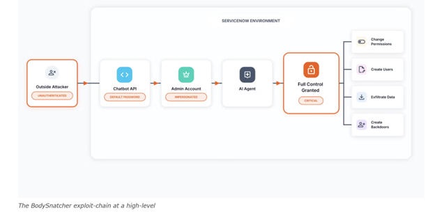 A critical authentication vulnerability affecting ServiceNow’s Virtual AgentAPI and Now Assist AI Agents application, tracked as CVE-2025-12420and dubbed “BodySnatcher.”